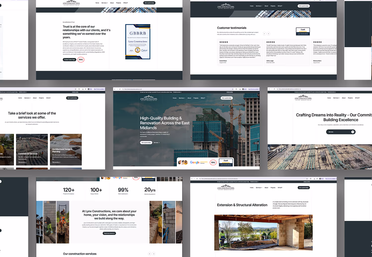We knew the first impression mattered, so we placed powerful trust signals front and centre. The new homepage now features company statistics and real customer testimonials above the fold, immediately showing visitors that Lynx Constructions is experienced, reliable, and highly rated. This approach gives potential clients confidence before they even scroll, setting the tone for the rest of their experience on the site.